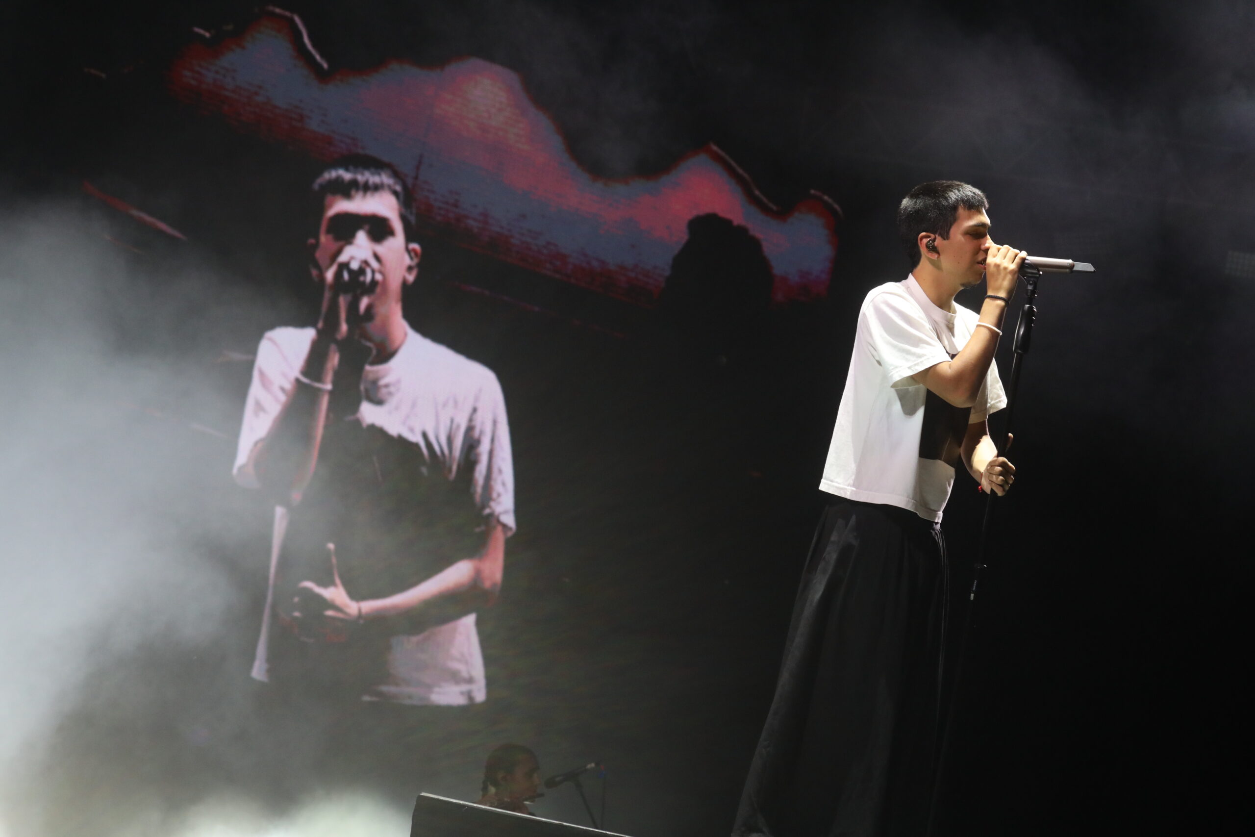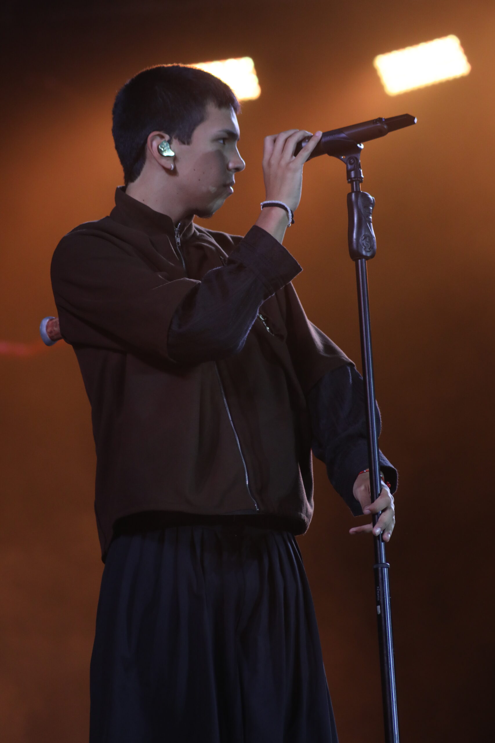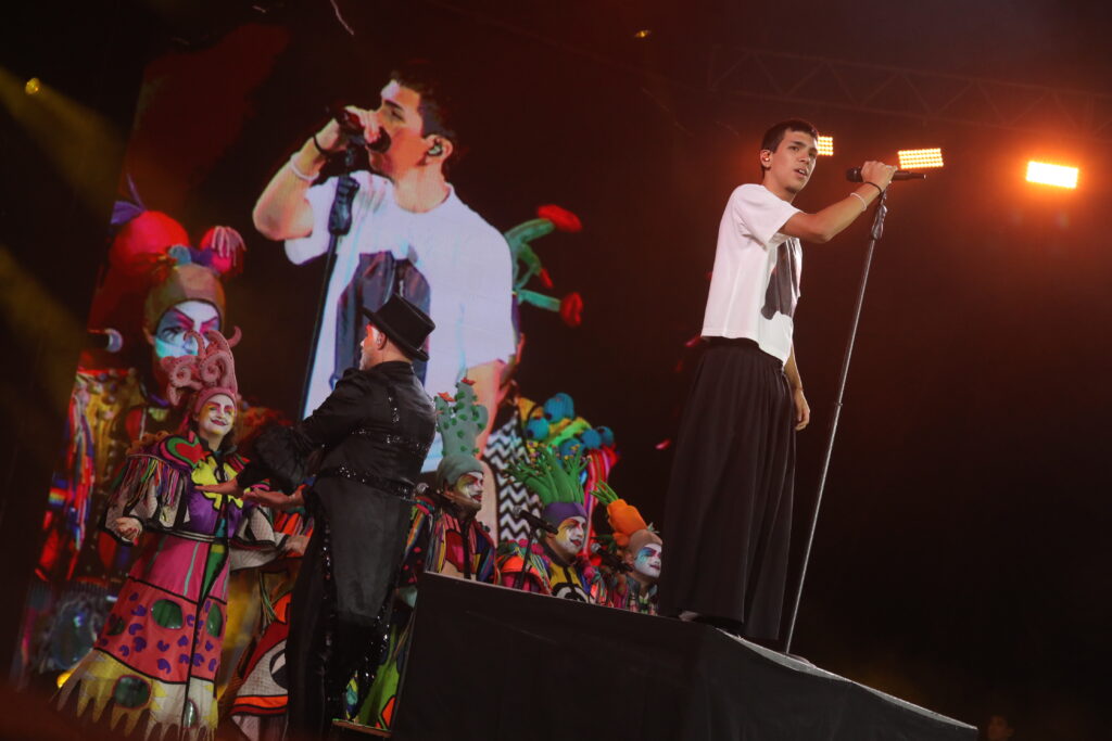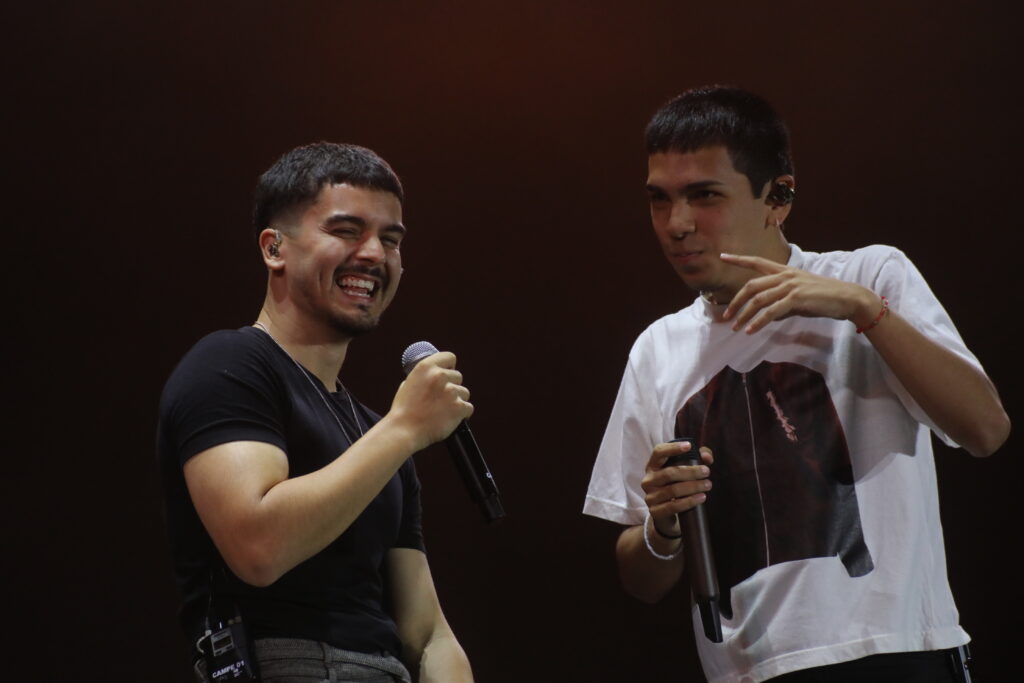 Y llegó, pantalón negro, remera y un saco con un cuchillo clavado en la espalda. Mocasines de charol y medias blancas. Tonos marrones, para una puesta en escena austera y una banda potente, que viajó del trap, al hip hop, y al folklore en segundos. Una niña de no más de 10 años lloraba desconsolada y se reía al mismo tiempo, como muchos pibes que estaban en la plaza. Consultada por el “vestuario de su ídolo”, dijo: “es por el título del disco, La vida era más corta, ¿entendés?. A unos metros, otros pre adolescentes cantaron abrazados algunas canciones y escucharon otras. Una mamá con un chiquito en andas, trataba de llegar cerca del escenario con un cartel que decía: “Milo sos mi ídolo”. “Milo te amo”, “Milo te queremos”, “Camilo, sos lo más”, “Sos mi amor”, “Milo, los sueños están para cumplirse”